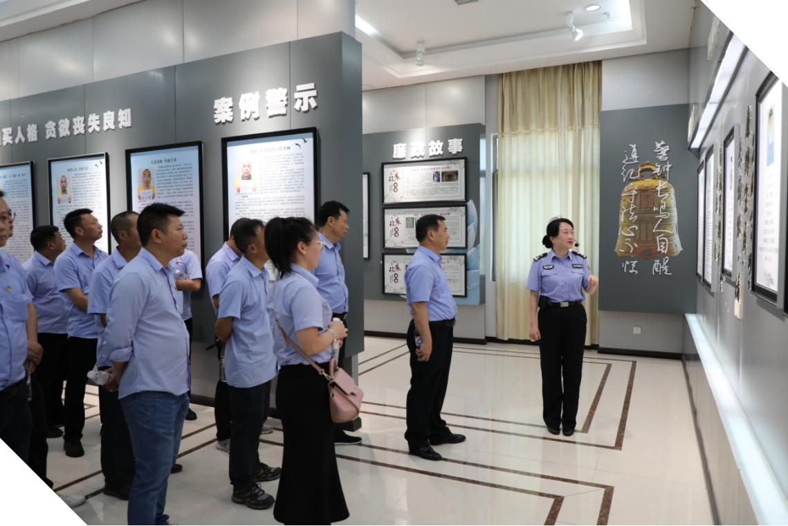 一進展廳,一面修身鏡映入眼簾,鏡子兩旁“以史為鏡可以知興替 以人為鏡可以明得失”兩行大字格外醒目,女警官陳志云向大家講述了古代廉政典范晏仲平、蘇轍、朱之瑜、包拯等人以及近代道德楷模周恩來、項英、李富春、陳毅、鄧稼先、孔繁森等的廉潔故事,朗誦了北宋周敦頤《愛蓮說》的片段,闡述了古今廉吏——八卷書(一錢太守、二不尚書、三湯巡撫、四知先生、五代清卿、六字知縣、七品欽差、八一巡撫)。同時,為大家解讀了共產黨人在四個不同時期的使命任務以及《清風“習”語》——習近平總書記關于黨風廉政建設和反腐敗斗爭的重要講話,闡釋了一個章程、兩個準則、兩個意見、七個規定、十六個條例等黨內重要法規……